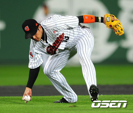 2011 롯데카드 프로야구 플레이오프 2차전 롯데 3루수 황재균이 SK 김강민의 빗맞은 타구를 맨손으로 처리하고 있다. 17일 부산 사직구장에서 벌어진 플레이오프 2차전서 롯데는 양승호 감독이 예고한대로 송승준을 SK 이만수 감독은 고든을 각각 선발로 내세웠다. 송승준은 유독 SK에 시즌 내내 약세를 보여왔지만 양승호 감독은 선발로 밀어부치는 뚝심을 보여 결과가 어떻게 나올지 주목된다. 한편 1차전은 SK가 연장 10회 접전 끝에 롯데에 7-6의 기분좋은 역전승을 거두며 기선제압에 성공했다. 과연 2차전에서 송승준이 감독의 믿음에 부응, 위기의 팀을 구해 지긋지긋한 가을 악몽을 떨쳐낼지 아니면 SK 고든이 준플레이오프 상승세를 이어가며 2연승을 이끌지 관심이 집중된다. /spjj@osen.co.kr