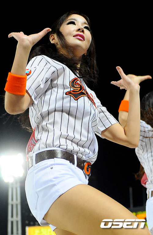 17일 오후 부산 사직구장서 열린 2011 롯데카드 프로야구 플레이오프 2차전 롯데 자이언츠와 SK 와이번스의 경기 롯데 치어리더가 화려한 공연을 펼치고 있다. 플레이오프 2차전서 롯데는 양승호 감독이 예고한대로 송승준을 SK 이만수 감독은 고든을 각각 선발로 내세웠다. 송승준은 유독 SK에 시즌 내내 약세를 보여왔지만 양승호 감독은 선발로 밀어부치는 뚝심을 보여 결과가 어떻게 나올지 주목된다. 한편 1차전은 SK가 연장 10회 접전 끝에 롯데에 7-6의 기분좋은 역전승을 거두며 기선제압에 성공했다. 과연 2차전에서 송승준이 감독의 믿음에 부응, 위기의 팀을 구해 지긋지긋한 가을 악몽을 떨쳐낼지 아니면 SK 고든이 준플레이오프 상승세를 이어가며 2연승을 이끌지 관심이 집중된다 / soul1014@osen.co.kr