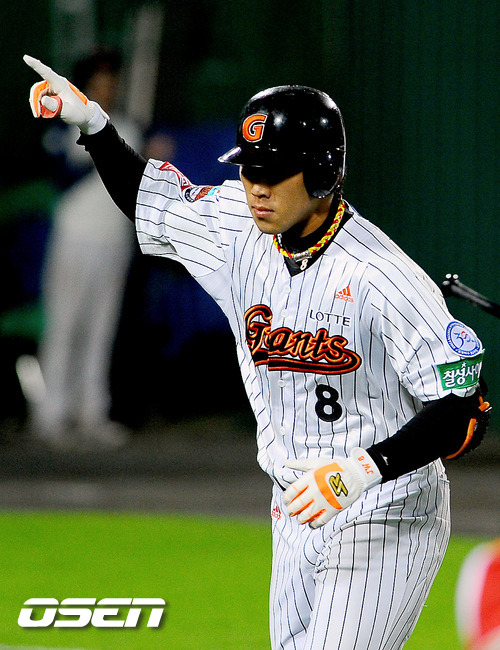 17일 오후 부산 사직구장서 열린 2011 롯데카드 프로야구 플레이오프 2차전 롯데 자이언츠와 SK 와이번스의 경기 6회말 1사 1루 상황에서 롯데 전준우가 선취 2점 홈런을 날린 후 환호하며 홈을 밟고 있다. 플레이오프 2차전서 롯데는 양승호 감독이 예고한대로 송승준을 SK 이만수 감독은 고든을 각각 선발로 내세웠다. 송승준은 유독 SK에 시즌 내내 약세를 보여왔지만 양승호 감독은 선발로 밀어부치는 뚝심을 보여 결과가 어떻게 나올지 주목된다. 한편 1차전은 SK가 연장 10회 접전 끝에 롯데에 7-6의 기분좋은 역전승을 거두며 기선제압에 성공했다. 과연 2차전에서 송승준이 감독의 믿음에 부응, 위기의 팀을 구해 지긋지긋한 가을 악몽을 떨쳐낼지 아니면 SK 고든이 준플레이오프 상승세를 이어가며 2연승을 이끌지 관심이 집중된다 / soul1014@osen.co.kr