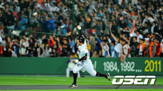 2011 롯데카드 프로야구 플레이오프 2차전 6회말 1사 1루 롯데 전준우가 좌월 투런홈런을 치고 그라운드를 돌며 환호하고 있다. 17일 부산 사직구장에서 벌어진 플레이오프 2차전서 롯데는 양승호 감독이 예고한대로 송승준을 SK 이만수 감독은 고든을 각각 선발로 내세웠다. 송승준은 유독 SK에 시즌 내내 약세를 보여왔지만 양승호 감독은 선발로 밀어부치는 뚝심을 보여 결과가 어떻게 나올지 주목된다. 한편 1차전은 SK가 연장 10회 접전 끝에 롯데에 7-6의 기분좋은 역전승을 거두며 기선제압에 성공했다. 과연 2차전에서 송승준이 감독의 믿음에 부응, 위기의 팀을 구해 지긋지긋한 가을 악몽을 떨쳐낼지 아니면 SK 고든이 준플레이오프 상승세를 이어가며 2연승을 이끌지 관심이 집중된다. / sunday@osen.co.kr