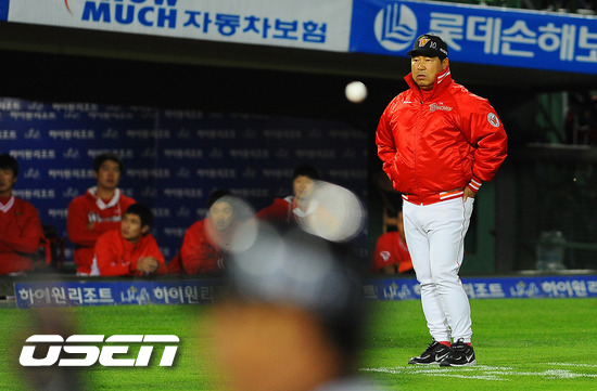 17일 오후 부산 사직구장서 열린 2011 롯데카드 프로야구 플레이오프 2차전 롯데 자이언츠와 SK 와이번스의 경기 6회말 1사 1루 상황 롯데 전준우의 선취 2점 홈런때 SK 이만수 감독대행이 비디오판독을 요청했다. 이만수 감독대행이 판정을 기다리고 있다. 판정은 2점 홈런 인정. 플레이오프 2차전서 롯데는 양승호 감독이 예고한대로 송승준을 SK 이만수 감독은 고든을 각각 선발로 내세웠다. 송승준은 유독 SK에 시즌 내내 약세를 보여왔지만 양승호 감독은 선발로 밀어부치는 뚝심을 보여 결과가 어떻게 나올지 주목된다. 한편 1차전은 SK가 연장 10회 접전 끝에 롯데에 7-6의 기분좋은 역전승을 거두며 기선제압에 성공했다. 과연 2차전에서 송승준이 감독의 믿음에 부응, 위기의 팀을 구해 지긋지긋한 가을 악몽을 떨쳐낼지 아니면 SK 고든이 준플레이오프 상승세를 이어가며 2연승을 이끌지 관심이 집중된다 / soul1014@osen.co.kr