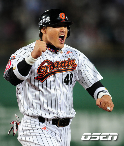 두 경기 연속 도루. 올해 페넌트레이스서 두 개의 도루에 그친 베테랑은 몸을 던지며 입담 대신 행동력을 보여줬다. '쾌남' 홍성흔(34. 롯데 자이언츠)이 주장으로서 책임감 넘치는 경기력을 보여줬다. 홍성흔은 17일 부산 사직구장서 벌어진 SK 와이번스와의 플레이오프 2차전서 5번 지명타자로 선발 출장해 3타수 1안타(볼넷 1개) 1득점 1도루를 기록했다. 팀의 4-1 승리 일등공신의 활약은 아니었으나 몸을 아끼지 않는 경기 내용에 주목할 만 했다. 2-0으로 앞선 6회말 상대 선발 브라이언 고든의 3구 째를 띄워 좌중간 안타로 연결한 홍성흔은 강민호 타석 볼카운트 2-2에서 도루를 시도해 세이프되었다. 충분히 작전이 걸렸을 시점이기도 했으나 홍성흔은 열심히 뛰어 도루를 성공시켰다. 두 경기 연속 도루. 16일에도 홍성흔은 5회 유격수 쪽 깊은 타구를 때려낸 뒤 1루에 헤드 퍼스트 슬라이딩으로 들어가는 모습을 보였다. 여유있게 서서 들어갔어도 세이프 되었을 타구였으나 홍성흔은 몸을 던졌다. 그리고 포수 정상호의 송구가 빠지는 행운 속 2루를 훔치기도 했다. 4-3으로 간신히 앞선 순간이던 만큼 홍성흔은 몸을 던져 선수단에 메세지를 전달했다. 플레이오프 들어 벤치에서 특유의 입담을 과시하기보다 경기 직전 선수들을 적극적으로 격려하는 주장으로서 역할에 충실한 홍성흔이다. "선수들에게 지금 이 순간을 즐기라고 했다. 너무 긴장하지 말라고. 그 정도 이야기했다"라는 말 정도가 홍성흔이 플레이오프 경기 전 꺼낸 이야기다. 선수 개인에게도 이번 플레이오프는 더없이 중요하다. 두산 시절이던 2008년 이후 홍성흔은 지난 2년 간 플레이오프를 경험하지 못했다. 프리에이전트(FA) 이적하며 '항상 팬 사랑에 감사한다. 반드시 더 좋은 성적을 내는데 전력을 쏟겠다'라던 홍성흔이었으나 2시즌 모두 플레이오프 진출 실패로 이어졌다. 개인은 좋은 성적을 거뒀으나 결과론적으로 팀 성적이 '현상 유지'였던 만큼 홍성흔은 매번 그에 대한 책임감을 이야기했다. 그리고 이번 플레이오프서는 말수를 줄이는 대신 몸으로 '선수로서 의무'를 말했다. farinelli@osen.co.kr 부산=손용호 기자 spjj@osen.co.kr