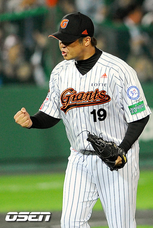 17일 오후 부산 사직구장서 열린 2011 롯데카드 프로야구 플레이오프 2차전 롯데 자이언츠와 SK 와이번스의 경기 7회초 1사 2,3루 상황에서 SK 정상호의 내야땅볼 아웃때 롯데 임경완 투수가 주먹을 쥐며 환호하고 있다. 플레이오프 2차전서 롯데는 양승호 감독이 예고한대로 송승준을 SK 이만수 감독은 고든을 각각 선발로 내세웠다. 송승준은 유독 SK에 시즌 내내 약세를 보여왔지만 양승호 감독은 선발로 밀어부치는 뚝심을 보여 결과가 어떻게 나올지 주목된다. 한편 1차전은 SK가 연장 10회 접전 끝에 롯데에 7-6의 기분좋은 역전승을 거두며 기선제압에 성공했다. 과연 2차전에서 송승준이 감독의 믿음에 부응, 위기의 팀을 구해 지긋지긋한 가을 악몽을 떨쳐낼지 아니면 SK 고든이 준플레이오프 상승세를 이어가며 2연승을 이끌지 관심이 집중된다 / soul1014@osen.co.kr