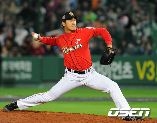 2011 롯데카드 프로야구 플레이오프 2차전 6회말 2사 1루 SK 고든과 교체된 이영욱이 힘차게 공을 던지고 있다. 17일 부산 사직구장에서 벌어진 플레이오프 2차전서 롯데는 양승호 감독이 예고한대로 송승준을 SK 이만수 감독은 고든을 각각 선발로 내세웠다. 송승준은 유독 SK에 시즌 내내 약세를 보여왔지만 양승호 감독은 선발로 밀어부치는 뚝심을 보여 결과가 어떻게 나올지 주목된다. 한편 1차전은 SK가 연장 10회 접전 끝에 롯데에 7-6의 기분좋은 역전승을 거두며 기선제압에 성공했다. 과연 2차전에서 송승준이 감독의 믿음에 부응, 위기의 팀을 구해 지긋지긋한 가을 악몽을 떨쳐낼지 아니면 SK 고든이 준플레이오프 상승세를 이어가며 2연승을 이끌지 관심이 집중된다. / sunday@osen.co.kr