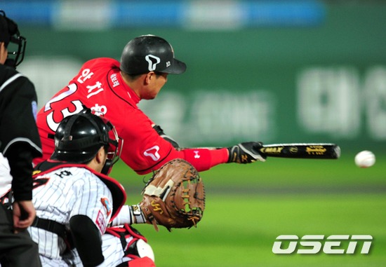 결정적인 순간 홈런을 때려내며 '난세영웅' 수식어를 다시 찾은 남자. 그리고 이번에는 기본기가 제대로 갖춰진 번트를 보여줬으나 팀의 동점 및 역전으로는 이어지지 않아 아쉬웠다. 안치용(32. SK 와이번스)이 팀의 추격 시점에서 절묘한 희생번트를 보여줬다. 안치용은 17일 부산 사직구장서 벌어진 롯데 자이언츠와의 플레이오프 2차전서 6번 타자 우익수로 선발 출장해 2타수 무안타(2삼진)에 그쳤다. 무안타에 그쳤으나 7회초 포수와 투수, 1루수가 모두 달려들 정도의 절묘한 번트 타구로 1사 2,3루 기회를 이끈 장면은 안치용의 17일을 무조건 부진으로 몰 수 없었다. 상대 투수 강영식의 초구 볼을 골라낸 안치용은 강영식의 2구 째를 번트했다. 이는 교과서적인 번트로 이어졌다. 워낙 위치가 절묘했기 때문에 주자 두 명이 여유있게 진루할 수 있던 타구였다. 이번 포스트시즌서 2홈런 5타점을 올리며 클러치 능력과 파괴력을 과시 중인 안치용. 그러나 사실 그는 LG 시절 충실하게 번트 연습을 했던 선수였다. 2008시즌 전지훈련도 가지 못한 채 국내 잔류군으로 기대치가 극히 낮았던 안치용은 그해 5월 경쟁자 김준호(한화)의 부상을 틈 타 주전 한 자리를 꿰차며 그해 2할9푼5리 7홈런 52타점을 올렸다. 당시 안치용이 열중했던 훈련 중 하나는 바로 번트였다. 당시 3번 타자로 나섰기 때문에 정작 실전에서 번트 시도는 많지 않았던 안치용이었으나 경기 전 훈련에서는 꼭 빼놓지 않고 번트를 연습했다. "원래 해야하는 훈련이니까. 그리고 번트를 자주 연습하면 선구안도 이전에 비해 좋아진다. 스트라이크 존에 들어오는 공을 번트하는 것이 이 훈련의 목적이다. 그래서 계속 하다보니 자연스레 선구안도 좋아지는 것을 느낄 수 있었다". 올해 페넌트레이스서 안치용이 희생번트는 두 차례에 불과했다. 그러나 그는 아직도 번트 연습을 허술히 생각지 않고 있다. 반복적인 번트 훈련을 통해 선구안도 키웠던 안치용의 절묘한 번트는 비록 팀을 승리로 이끌지는 못했으나 그가 경기 전 연습에 쏟던 땀방울을 다시 떠올리게 했다. farinelli@osen.co.kr 부산=손용호 기자 spjj@osen.co.kr