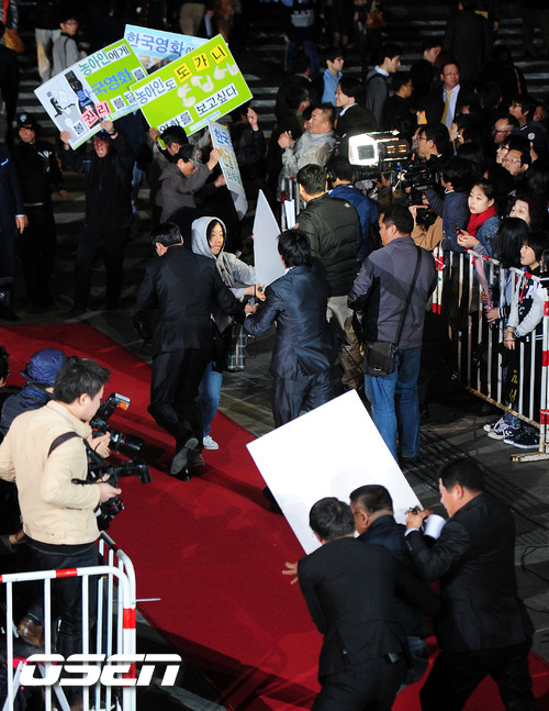 17일 오후 서울 광화문 세종문화회관에서 열린 제 48회 대종상영화제 레드카펫 행사에서 전국장애인차별철폐연대, 장애인정보문화누리, 장애인차별금지추진연대 등이 한국 영화의 '한글 자막 의무화'를 외치며 시위를 하고 있다. 올해 본선에 오른 작품 및 배우들은 일반심사위원 50명이 지난 9월 5일부터 30일까지 엄정한 심사를 거쳐 선발됐다. 각 부문별로 5~6편의 작품 및 배우들이 각각 노미네이트 됐다. 총 24개 부분에 걸쳐 시상이 진행되는 올해 대종상영화제에서 영광의 주역은 누가될까. 먼저 최우수작품상 후보로는 전쟁의 참상을 그린 '고지전', 올해 한국 영화 사상 최고의 흥행 기록을 세운 '최종병기 활', 그 뒤를 잊는 '써니', 그리고 '부당거래'와 '황해'가 각각 후보로 올랐다. 감독상 후보로는 영화 '고지전'의 장훈 감독, '만추'의 김태용 감독, '부당거래' 류승완 감독, '써니'의 김형철 감독, '황해'의 나홍진 감독이 후보로 올랐다. '고지전'의 장훈, '부당거래' 류승완, '써니' 김형철, '황해'의 나홍진 감독 등 최우수작품상 및 감독상에 모두 이름을 올린 감독 중 2관왕을 휩쓸 주인공이 탄생할 지 관심이 쏠리고 있다. 이어 남우주연상에는 6명의 배우가 이름을 올렸다. 영화 '그대를 사랑합니다의' 이순재, '부당거래'의 류승범, '최종병기 활'의 박해일, '풍산개'의 윤계상, '헬로우 고스트'의 차태현, '황해'의 김윤석이 노미네이트 됐다. 영화제의 꽃 여우주연상에는 '블라인드'의 김하늘, '세상에서 가장 아름다운 이별'의 배종옥, '써니'의 심은경, '이층의 악당'에 김혜수, '쩨쩨한 로맨스'에 최강희, '그대를 사랑합니다'의 윤소정이 후보에 올랐다. 또 남우조연상에는 영화 '고지전'의 류승룡, '모비딕'의 김상호, '부당거래'의 유해진, '혈투'의 고창석, '황해'의 조성하, '블라인드'의 조희봉이, 여우조연상에는 '그대를 사랑합니다'의 김수미, '로맨틱 헤븐'의 심은경, '세상에서 가장 아름다운 이별'의 김지영과 서영희, '써니'의 천우희, '헬로우 고스트'의 장영남이 올랐다. 두 부문다 동점자로 인해 각각 6명이 노미네이트 됐다. 충무로의 신성을 가리는 남녀신인상을 가리는데도 치열한 각축전이 예상된다. 신인남우상엔 '고지전'의 이제훈, '글러브'의 장기범, '량강도 아이들'의 김환영, '파수꾼'의 이제훈, '혜화.동'의 유연석이 올랐으며, 신인여우상에는 '써니'의 강소라, '최종병기 활'의 문채원, '페스티발'의 백진희, '푸른 소금'의 신세경, '혜화.동' 유다인이 후보에 올랐다. 신인감독상에는 '량강도 아이들'의 김성훈 감독, '모비딕'의 박인제 감독, '파수꾼'의 윤성현 감독, '헬로우 고스트'의 김영탁 감독, '혜화.동'의 민용근 감독이 올랐다. 이외에도 촬영상, 조명상, 편집상, 음악상, 기획상, 시나리오상, 미술상, 영상기술상, 음향기술상, 의상상등 각 부문별로 5개 작품이 선정이 됐다. 올해 스크린을 빛낸 국내 작품 및 배우, 감독 가운데 트로피를 가슴에 안을 영예의 주인공은 누가될지 귀추가 주목된다. / jpnews@osen.co.kr