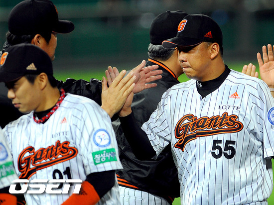 17일 오후 부산 사직구장에서 2011 롯데카드 프로야구 플레이오프 2차전 롯데 자이언츠와 SK 와이번스의 경기가 열렸다 롯데 자이언츠가 지긋지긋한 포스트시즌 홈 12연패의 늪에서 탈출하며 부산 홈 팬들에게 기쁨을 선사했다. 무려 4378일 만의 홈경기 승리다. 롯데는 17일 사직구장에서 열린 '2011 롯데카드 프로야구' SK 와이번스와 PO 2차전에서 선발 송승준의 1실점 호투와 전준우의 투런포 덕분에 4-1로 승리를 거뒀다. 덕분에 롯데는 지난 1999년부터 이어진 포스트시즌 홈 연패에서 벗어났다. 경기 종료 후 롯데 선수들이 승리의 기쁨을 나누고 있다./soul1014@osen.co.kr