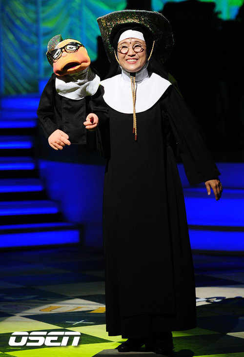 18일 오후 서울 이화여자대학교 삼성홀에서 열린 뮤지컬 '넌센세이션' 프레스콜에서 개그우먼 송은이가 멋진 무대를 선보이고 있다. '넌센세이션'은 '넌센스'의 완결편이라 할 수 있는 라스베가스 버전으로 다섯 수녀들의 예측할 수 없는 좌충우돌 해프닝과 함께 경건하고 금욕적인 생활을 하는 것으로만 알고 있던 수녀들의 무대 카리스마와 개인기로 더욱 강력한 웃음 핵폭탄을 선사한다. 1991년 '넌센스' 초연 이후 올해로 21년째를 맞이하고 있는 '넌센세이션 넌센스 6탄'은 18일부터 오는 12월 18일까지 이화여자대학교 삼성홀에서 공연된다. /jpnews@osen.co.kr