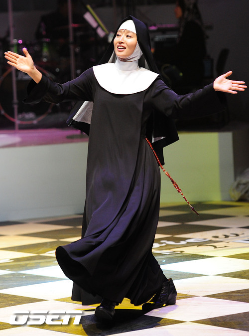 18일 오후 서울 이화여자대학교 삼성홀에서 열린 뮤지컬 '넌센세이션' 프레스콜에서 가수 황보가 멋진 무대를 선보이고 있다. '넌센세이션'은 '넌센스'의 완결편이라 할 수 있는 라스베가스 버전으로 다섯 수녀들의 예측할 수 없는 좌충우돌 해프닝과 함께 경건하고 금욕적인 생활을 하는 것으로만 알고 있던 수녀들의 무대 카리스마와 개인기로 더욱 강력한 웃음 핵폭탄을 선사한다. 1991년 '넌센스' 초연 이후 올해로 21년째를 맞이하고 있는 '넌센세이션 넌센스 6탄'은 18일부터 오는 12월 18일까지 이화여자대학교 삼성홀에서 공연된다. /jpnews@osen.co.kr