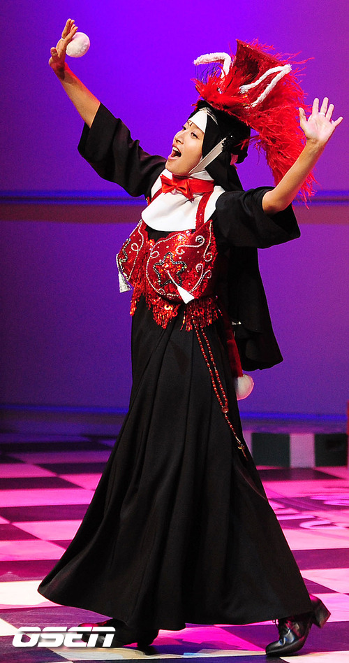 18일 오후 서울 이화여자대학교 삼성홀에서 열린 뮤지컬 '넌센세이션' 프레스콜에서 가수 황보가 멋진 무대를 선보이고 있다. '넌센세이션'은 '넌센스'의 완결편이라 할 수 있는 라스베가스 버전으로 다섯 수녀들의 예측할 수 없는 좌충우돌 해프닝과 함께 경건하고 금욕적인 생활을 하는 것으로만 알고 있던 수녀들의 무대 카리스마와 개인기로 더욱 강력한 웃음 핵폭탄을 선사한다. 1991년 '넌센스' 초연 이후 올해로 21년째를 맞이하고 있는 '넌센세이션 넌센스 6탄'은 18일부터 오는 12월 18일까지 이화여자대학교 삼성홀에서 공연된다. /jpnews@osen.co.kr
