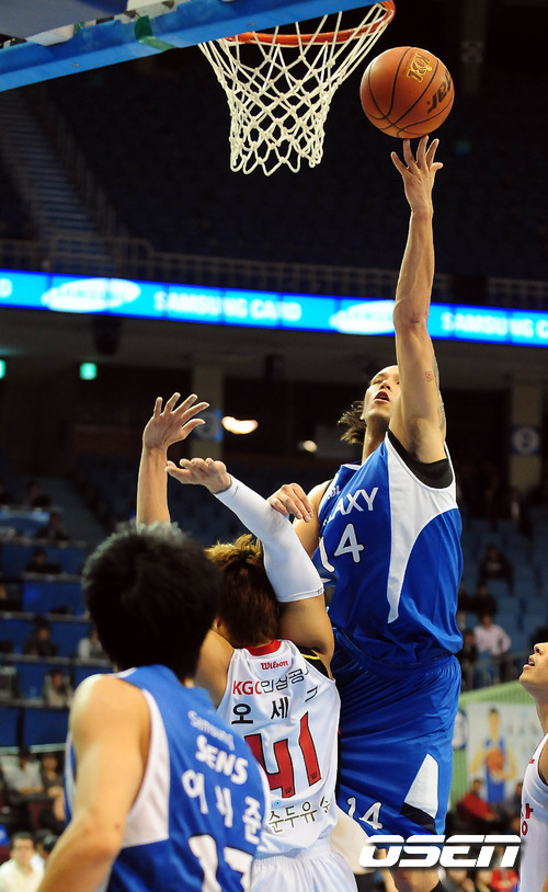 [OSEN=잠실실내체 ,백승철 인턴기자] 18일 오후 서울 잠실 실내체육관서 열린 '2011-2012 KB국민카드 프로농구' 서울 삼성과 안양 KGC 인삼공사의 경기 2쿼터 삼성 이승준이 레이업슛을 시도 하고 있다. 김상준 감독이 이끄는 삼성은 지는 16일 열린 LG와의 경기서 74-81로 패해 시즌 1승1패를 기록, 이상범 감독이 지휘하는 안양은 지난 15일 열린 원주와의 경기서 65-67로 패해 시즌 2연패를 기록하고 있다. / baik@osen.co.kr