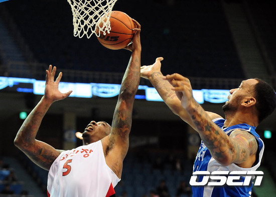 [OSEN=잠실실내체 ,백승철 인턴기자] 18일 오후 서울 잠실 실내체육관서 열린 '2011-2012 KB국민카드 프로농구' 서울 삼성과 안양 KGC 인삼공사의 경기 2쿼터 인삼공사 로드니 화이트와 삼성 라모스가 리바운드볼 다툼을 하고 있다. 김상준 감독이 이끄는 삼성은 지는 16일 열린 LG와의 경기서 74-81로 패해 시즌 1승1패를 기록, 이상범 감독이 지휘하는 안양은 지난 15일 열린 원주와의 경기서 65-67로 패해 시즌 2연패를 기록하고 있다. / baik@osen.co.kr
