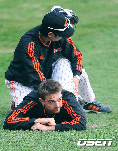 사직구장에서는 1승 1패로 호각을 이뤘다. 이제 문학구장으로 이동해 한국시리즈 진출 티켓을 위한 열전을 치른다. 19일 오후 인천 문학구장에서 열린 '2011 롯데카드 프로야구' 플레이오프 3차전 롯데 자이언츠와 SK 와이번스의 경기에 앞서 롯데 선발투수 사도스키가 그라운드에 누워 몸을 풀고 있다. SK 와이번스는 송은범(27)을, 롯데 자이언츠는 라이언 사도스키(29)를 선발 마운드에 내세웠다. 두 투수 모두 올 시즌에는 상대 타선에 열세를 면치 못했다. 시리즈 향방을 가를 3차전, 최근 10년 간 플레이오프 3차전 승리 팀이 한국시리즈 티켓을 따낸 경우는 7차례였다. /jpnews@osen.co.kr