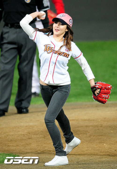사직구장에서는 1승 1패로 호각을 이뤘다. 이제 문학구장에서 한국시리즈 진출 티켓을 위한 열전을 치른다. 19일 오후 인천 문학구장에서 열린 '2011 롯데카드 프로야구' 플레이오프 3차전 롯데 자이언츠와 SK 와이번스의 경기, 시구자로 나선 배우 박민영이 힘차게 볼을 던지고 있다. 양팀은 1차전서는 연장 접전 끝에 정상호의 홈런을 앞세운 SK가, 2차전서는 송승준의 역투와 전준우의 투런 홈런으로 롯데가 승리를 거둬 사이좋게 1승씩을 나누어 가졌다. 3차전에서 SK는 송은범(27)을, 롯데는 라이언 사도스키(29)를 선발 마운드에 내세웠다. 두 투수 모두 올 시즌에는 상대 타선에 열세를 면치 못했다. 시리즈 향방을 가를 3차전, 최근 10년 간 플레이오프 3차전 승리 팀이 한국시리즈 티켓을 따낸 경우는 7차례였다. /jpnews@osen.co.kr