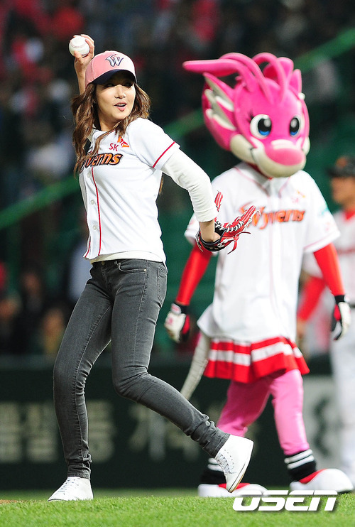 2011 롯데카드 프로야구 플레이오프 SK 와이번스와 롯데 자이언츠의 경기에 앞서 인기 탤런트 박민영이 멋진 폼으로 시구를 하고 있다. 19일 문학구장에서 벌어진 3차전서 SK는 송은범을 롯데는 사도스키를 내새워 한국시리즈로 가는 중요한 일전을 벌인다. 양팀은 1차전서는 연장 접전 끝에 정상호의 홈런을 앞세운 SK가 2차전서는 송승준의 역투와 전준우의 투런 홈런으로 롯데가 승리를 거두어 사이좋게 1승씩을 나누어 가졌다. SK 이만수 감독은 플레이오프 3차전을 앞두고 타순 조정을 통한 필승의지를 다졌다.이 감독은"박정권이 4번, 안치용이 5번, 그리고 최동수가 지명타자로 6번으로 배치 필승의 의지를 다졌다. 롯데 양승호 감독은 '선수들이 많이 성숙해졌다. 1차전서 그렇게 지고 위축될 줄 알았는데 2차전을 승리로 이끌었다'며 선수들을 칭찬 했다. /spjj@osen.co.kr