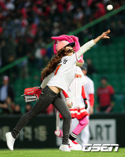 2011 롯데카드 프로야구 플레이오프 SK 와이번스와 롯데 자이언츠의 경기에 앞서 인기 탤런트 박민영이 멋진 폼으로 시구를 하고 있다. 19일 문학구장에서 벌어진 3차전서 SK는 송은범을 롯데는 사도스키를 내새워 한국시리즈로 가는 중요한 일전을 벌인다. 양팀은 1차전서는 연장 접전 끝에 정상호의 홈런을 앞세운 SK가 2차전서는 송승준의 역투와 전준우의 투런 홈런으로 롯데가 승리를 거두어 사이좋게 1승씩을 나누어 가졌다. SK 이만수 감독은 플레이오프 3차전을 앞두고 타순 조정을 통한 필승의지를 다졌다.이 감독은"박정권이 4번, 안치용이 5번, 그리고 최동수가 지명타자로 6번으로 배치 필승의 의지를 다졌다. 롯데 양승호 감독은 '선수들이 많이 성숙해졌다. 1차전서 그렇게 지고 위축될 줄 알았는데 2차전을 승리로 이끌었다'며 선수들을 칭찬 했다. /spjj@osen.co.kr