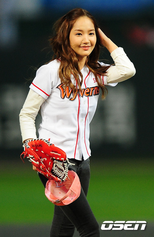 2011 롯데카드 프로야구 플레이오프 SK 와이번스와 롯데 자이언츠의 경기에 앞서 탤런트 박민영이 시구를 마친 후 미소짓고 있다. 19일 문학구장에서 벌어진 3차전서 SK는 송은범을 롯데는 사도스키를 내세워 한국시리즈로 가는 중요한 일전을 벌인다. 양팀은 1차전서는 연장 접전 끝에 정상호의 홈런을 앞세운 SK가 2차전서는 송승준의 역투와 전준우의 투런 홈런으로 롯데가 승리를 거두어 사이좋게 1승씩을 나누어 가졌다. SK 이만수 감독은 플레이오프 3차전을 앞두고 타순 조정을 통한 필승의지를 다졌다.이 감독은"박정권이 4번, 안치용이 5번, 그리고 최동수가 지명타자로 6번으로 배치 필승의 의지를 다졌다. 롯데 양승호 감독은 "선수들이 많이 성숙해졌다. 1차전서 그렇게 지고 위축될 줄 알았는데 2차전을 승리로 이끌었다"며 선수들을 칭찬 했다. / rumi@osen.co.kr