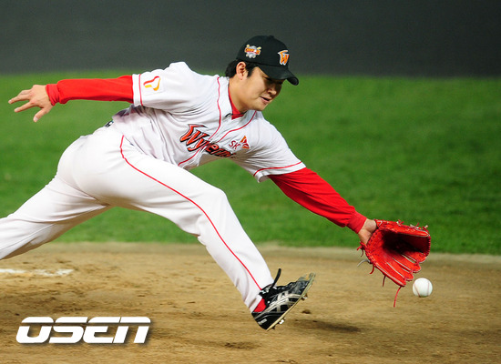 사직구장에서는 1승 1패로 호각을 이뤘다. 이제 문학구장에서 한국시리즈 진출 티켓을 위한 열전을 치른다. 19일 오후 인천 문학구장에서 열린 '2011 롯데카드 프로야구' 플레이오프 3차전 롯데 자이언츠와 SK 와이번스의 경기, 1회초 1사에서 SK 송은범이 롯데 손아섭의 내야땅볼을 잡으려 손을 뻗고 있다. 양팀은 1차전서는 연장 접전 끝에 정상호의 홈런을 앞세운 SK가, 2차전서는 송승준의 역투와 전준우의 투런 홈런으로 롯데가 승리를 거둬 사이좋게 1승씩을 나누어 가졌다. 3차전에서 SK는 송은범(27)을, 롯데는 라이언 사도스키(29)를 선발 마운드에 내세웠다. 두 투수 모두 올 시즌에는 상대 타선에 열세를 면치 못했다. 시리즈 향방을 가를 3차전, 최근 10년 간 플레이오프 3차전 승리 팀이 한국시리즈 티켓을 따낸 경우는 7차례였다. /jpnews@osen.co.kr