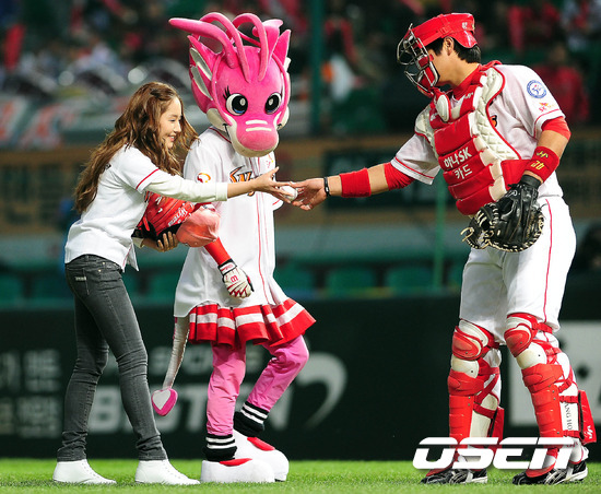 2011 롯데카드 프로야구 플레이오프 SK 와이번스와 롯데 자이언츠의 경기에 앞서 인기 탤런트 박민영이 멋진 폼으로 시구를 하고 있다. 19일 문학구장에서 벌어진 3차전서 SK는 송은범을 롯데는 사도스키를 내새워 한국시리즈로 가는 중요한 일전을 벌인다. 양팀은 1차전서는 연장 접전 끝에 정상호의 홈런을 앞세운 SK가 2차전서는 송승준의 역투와 전준우의 투런 홈런으로 롯데가 승리를 거두어 사이좋게 1승씩을 나누어 가졌다. SK 이만수 감독은 플레이오프 3차전을 앞두고 타순 조정을 통한 필승의지를 다졌다.이 감독은"박정권이 4번, 안치용이 5번, 그리고 최동수가 지명타자로 6번으로 배치 필승의 의지를 다졌다. 롯데 양승호 감독은 '선수들이 많이 성숙해졌다. 1차전서 그렇게 지고 위축될 줄 알았는데 2차전을 승리로 이끌었다'며 선수들을 칭찬 했다. /spjj@osen.co.kr