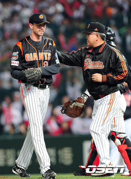 2011 롯데카드 프로야구 플레이오프 SK 와이번스와 롯데 자이언츠의 경기 6회말 2사 2루 사도스키가 마운드를 내려가고 있다. 19일 문학구장에서 벌어진 3차전서 SK는 송은범을 롯데는 사도스키를 내새워 한국시리즈로 가는 중요한 일전을 벌인다. 양팀은 1차전서는 연장 접전 끝에 정상호의 홈런을 앞세운 SK가 2차전서는 송승준의 역투와 전준우의 투런 홈런으로 롯데가 승리를 거두어 사이좋게 1승씩을 나누어 가졌다. SK 이만수 감독은 플레이오프 3차전을 앞두고 타순 조정을 통한 필승의지를 다졌다.이 감독은"박정권이 4번, 안치용이 5번, 그리고 최동수가 지명타자로 6번으로 배치 필승의 의지를 다졌다. 롯데 양승호 감독은 '선수들이 많이 성숙해졌다. 1차전서 그렇게 지고 위축될 줄 알았는데 2차전을 승리로 이끌었다'며 선수들을 칭찬 했다. /spjj@osen.co.kr