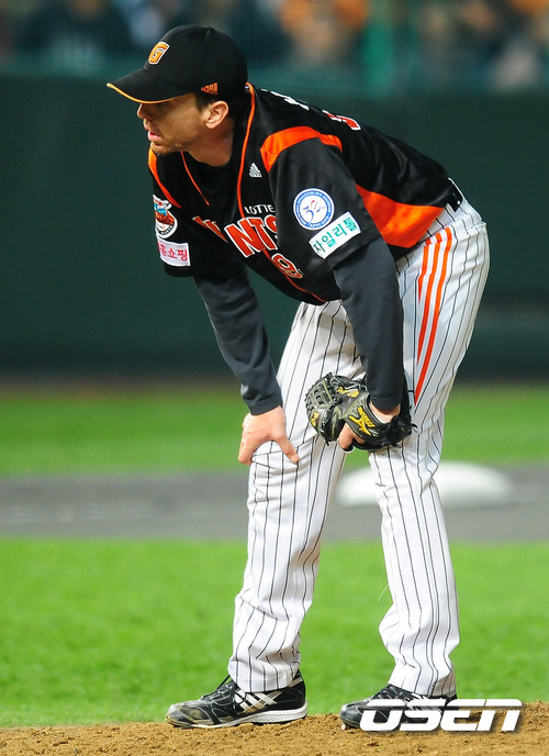 2011 롯데카드 프로야구 플레이오프 3차전 SK 와이번스와 롯데 자이언츠의 경기에서 6회말 2사 주자 1루 롯데 선발 사도스키가 SK 안치용에게 볼넷을 주자 아쉬워하고 있다. 19일 문학구장에서 벌어진 3차전서 SK는 송은범을 롯데는 사도스키를 내세워 한국시리즈로 가는 중요한 일전을 벌인다. 양팀은 1차전서는 연장 접전 끝에 정상호의 홈런을 앞세운 SK가 2차전서는 송승준의 역투와 전준우의 투런 홈런으로 롯데가 승리를 거두어 사이좋게 1승씩을 나누어 가졌다. SK 이만수 감독은 플레이오프 3차전을 앞두고 타순 조정을 통한 필승의지를 다졌다.이 감독은"박정권이 4번, 안치용이 5번, 그리고 최동수가 지명타자로 6번으로 배치 필승의 의지를 다졌다. 롯데 양승호 감독은 "선수들이 많이 성숙해졌다. 1차전서 그렇게 지고 위축될 줄 알았는데 2차전을 승리로 이끌었다"며 선수들을 칭찬했다. / rumi@osen.co.kr