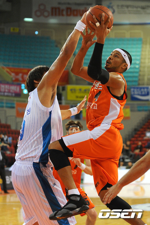 '2011~2012 KB국민카드 프로농구' 인천 전자랜드와 전주 KCC의 경기가 19일 인천 삼산월드체육관에서 열렸다. 3쿼터 전자랜드 문태종이 KCC 하승진의 수비를 피해 슛을 시도하고 있다. 문태종과 함께 팀을 이끌던 국보급 센터 서장훈의 이적으로 전력상 공백이 생긴 전자랜드와 시즌 개막 후 2연승을 달리고 있는 KCC의 치열한 경기가 예상된다. / sunday@osen.co.kr
