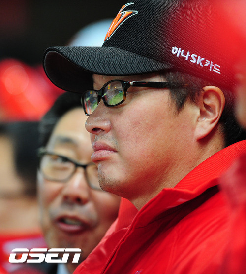 사직구장에서는 1승 1패로 호각을 이뤘다. 이제 문학구장에서 한국시리즈 진출 티켓을 위한 열전을 치른다. 19일 오후 인천 문학구장에서 열린 '2011 롯데카드 프로야구' 플레이오프 3차전 롯데 자이언츠와 SK 와이번스의 경기, 최태원 SK회장이 경기장을 찾아 응원을 하고 있다. 양팀은 1차전서는 연장 접전 끝에 정상호의 홈런을 앞세운 SK가, 2차전서는 송승준의 역투와 전준우의 투런 홈런으로 롯데가 승리를 거둬 사이좋게 1승씩을 나누어 가졌다. 3차전에서 SK는 송은범(27)을, 롯데는 라이언 사도스키(29)를 선발 마운드에 내세웠다. 두 투수 모두 올 시즌에는 상대 타선에 열세를 면치 못했다. 시리즈 향방을 가를 3차전, 최근 10년 간 플레이오프 3차전 승리 팀이 한국시리즈 티켓을 따낸 경우는 7차례였다. /jpnews@osen.co.kr