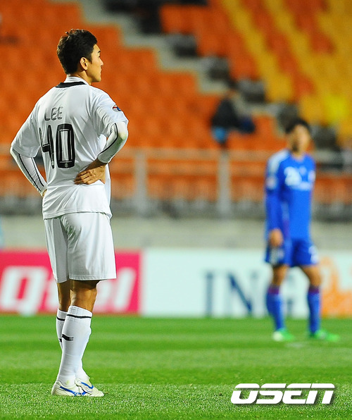 19일 오후 경기도 수원시 수원월드컵경기장서 열린 '2011 아시아축구연맹(AFC) 챔피언스리그' 4강전 1차전 수원 삼성과 알 사드(카타르)의 경기 후반 알 사드 니앙이 선취골을 넣었다. 알 사드 이정수가 수비 자리를 지키며 환호하는 동료 선수들을 지켜보고 있다. 알 사드는 카타르 프로축구에서 11차례나 우승한 강호로 2006~2008년까지 수원에서 뛰었던 이정수가 알 사드에 소속되어 있어 국내팬들의 관심을 모으고 있는 팀이다. 수원은 오범석이 경고 누적으로 출전하지 못한다는 점은 아쉽지만 염기훈, 박현범 등 K리그에서 최상의 모습을 보이고 있는 선수들을 앞세워 알 사드의 기세를 꺾겠다는 각오다. /soul1014@osen.co.kr