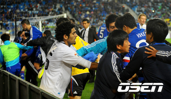 19일 오후 경기도 수원시 수원월드컵경기장서 열린 '2011 아시아축구연맹(AFC) 챔피언스리그' 4강전 1차전 수원 삼성과 알 사드(카타르)의 경기 후반 흥분한 양팀 선수이 몸다툼을 하고 있다. 알 사드는 카타르 프로축구에서 11차례나 우승한 강호로 2006~2008년까지 수원에서 뛰었던 이정수가 알 사드에 소속되어 있어 국내팬들의 관심을 모으고 있는 팀이다. 수원은 오범석이 경고 누적으로 출전하지 못한다는 점은 아쉽지만 염기훈, 박현범 등 K리그에서 최상의 모습을 보이고 있는 선수들을 앞세워 알 사드의 기세를 꺾겠다는 각오다. /soul1014@osen.co.kr