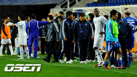 19일 오후 경기도 수원시 수원월드컵경기장서 열린 '2011 아시아축구연맹(AFC) 챔피언스리그' 4강전 1차전 수원 삼성과 알 사드(카타르)의 경기 후반 알사드의 추가골때 고종수 코치가 항의가 받아들여지지 않자 벤치로 돌아가고 있다. 알 사드는 카타르 프로축구에서 11차례나 우승한 강호로 2006~2008년까지 수원에서 뛰었던 이정수가 알 사드에 소속되어 있어 국내팬들의 관심을 모으고 있는 팀이다. 수원은 오범석이 경고 누적으로 출전하지 못한다는 점은 아쉽지만 염기훈, 박현범 등 K리그에서 최상의 모습을 보이고 있는 선수들을 앞세워 알 사드의 기세를 꺾겠다는 각오다. /soul1014@osen.co.kr