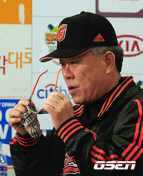 이제 1승 남았다. SK 와이번스가 5년 연속 한국시리즈 진출을 눈앞에 뒀다. SK는 19일 문학구장에서 열린 롯데와의 플레이오프 3차전에서 우완 선발 송은범의 무실점 호투와 팀내 최고령 최동수의 결승타, 김강민의 2타점 쐐기타를 앞세워 3-0으로 짜릿한 완봉 승리를 거두었다 . 송은범은 이날 6이닝 3피안타 3볼넷 4탈삼진 무실점으로 혼신의 역투를 선보였다. 감기와 팔꿈치 통증으로 완전한 몸상태가 아닌데도 불구, 최고의 피칭으로 롯데 타선을 막아냈다. 총투구수는 98개. 직구는 최고 155km를 전광판에 찍는 최고의 피칭을 했다. 9회초 양승호 롯데 감독이 패색이 짙어지자 안경을 고쳐 쓰고 있다. /spjj@osen.co.kr