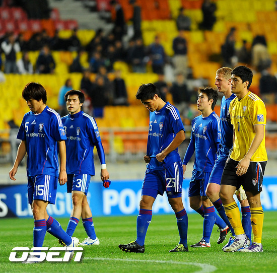 수원이 19일 오후 수원월드컵경기장에서 열린 알 사드(카타르)와 2011 아시아축구연맹(AFC) 챔피언스리그 4강 1차전에서 0-2로 패했다. 이로써 수원은 오는 27일 자정 알 사드의 홈구장인 알 사드 스타디움에서 열릴 8강 2차전을 앞두고 큰 부담을 안게 됐다. 경기종료 후 수원 선수들이 고개 숙인채 그라운드를 빠져나가고 있다. /soul1014@osen.co.kr