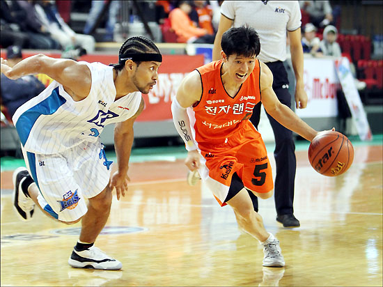 "동부전이 끝나고 침체되어 걱정을 했는데 오늘 승리로 선수들이 자신감을 갖는 계기가 됐다". 유도훈 감독이 지휘하는 인천 전자랜드는 19일 저녁 인천 삼산실내체육관서 열린 전주 KCC와 '2011-2012 KB국민카드' 1라운드 홈 경기서 79-76으로 승리를 거뒀다. 이로써 전자랜드는 강력한 우승 후보로 꼽히는 세 팀(부산 KT-승, 원주 동부-패, 전주 KCC-승)에 2승 1패를 기록하게 됐다. 이날 신기성은 15득점 5어시스트 5스틸로 공격과 수비에서 맹활을 펼치며 팀 승리의 주역이 됐다. 경기 후 만난 신기성은 "홈 경기를 찾아주신 팬들께 고맙다. 동부전이 끝나고 침체되어 걱정을 했는데 오늘 승리로 선수들이 자신감을 갖는 계기가 됐다"고 경기 소감을 밝혔다. 전자랜드는 지난 동부와 경기서 19점차 패배를 당하며 기세가 꺾인 상태였다. 이에 유도훈 감독은 선수단과 단체로 막걸리를 마시며 기분 전환에 나섰다. 신기성은 "당시 감독님께서 기분이 좋지 않으셨다. 우리가 할 수 있는 부분을 못하고 포기해서 그러셨다"며 "그래서 감독님께서 선수들의 기분 끌어 올리려고 막걸리 한 사발씩 마시며 분위기를 만들어 주셨다"고 말했다. 이번 시즌 전자랜드는 주축 선수층이 대거 바뀌었다. 팀의 색깔 자체가 변한 것. 신기성은 "지난 시즌 우리 팀의 높이가 전력의 80%였다면 이번 시즌에는 높이와 스피드, 조직력을 모두 고르게 플레이 해야 할 것 같다"며 "아직 문태종, 잭슨 브로만하고 손발을 맞추지 못했다. 훈련량이 부족하다. 시간이 가면 저절로 조직력이 맞춰지긴 할 것이다"고 했다. 이어 "지난 시즌에는 높이의 팀을 상대하건 스피드의 팀을 상대하건 간에 우리 공격 옵션 중 높이가 80%였다면 이번 시즌에는 50%정도라고 본다. 그렇지만 몇 경기를 해봤는데 우리가 높이에서 뒤진다고는 생각하지 않는다"고 덧붙였다. 한편 신기성은 이날 상대한 KCC에 대한 평가로 "오늘 KCC 선수들의 몸이 무거운 것 같았다. 또한 우리가 홈 경기라 열심히 하기도 했다"면서 "앞으로 경기가 많으니 조직력을 다지겠다. 문태종, 잭슨 브로만과 훈련을 한 것이 1~2주밖에 안됐으니 부족한 것들을 맞춰가겠다. 가면 갈수록 좋아질 것이다"고 전했다. sports_narcotic@osen.co.kr KBL 제공.