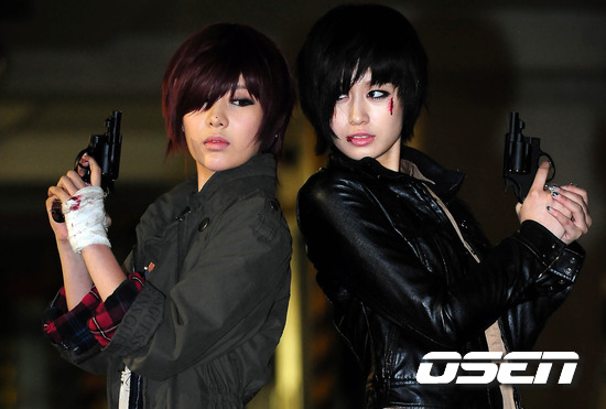 [OSEN=부산 ,백승철 인턴기자] 19일 오후 부산 서구 암남동에 위치한 한 물류창고에서 진행된 티아라 신작 뮤직비디오 제작현장에서 큐리와 지연이 사진촬영을 위해 포즈를 취하고 있다. 차은택 감독이 연출을 맡은 이번 뮤직비디오는 30분짜리 드라마 타이즈 형식으로 영화 같은 스토리 전개와 영상미를 맛 볼수 있다는게 특징이다. 10억원의 제작비가 투입되고 차승원과 지창욱이 출연해 더욱 관심을 끌고 있는 이번 티아라의 신작 뮤직비디오 오는 11월 말 공개될 예정이다. / baik@osen.co.kr