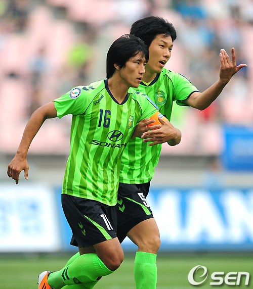 '캡틴' 조성환이 천금같은 결승 헤딩골을 터트리며 ACL 4강 1차전서 전북에 재역전승을 안겼다. 전북 현대는 20일(이하 한국시간) 새벽 사우디아라비아 제다 프린스 압둘라 알 파이살 스타디움에서 열린 알 이티하드와 아시아축구연맹(AFC) 챔피언스리그 4강 1차전서 조성환의 결승골에 힘입어 3-2로 승리했다. 원정 경기서 승리를 챙긴 전북은 2차전을 홈에서 치르게 되어 결승 진출에 유리한 상황이 됐다. 전북과 알 이티하드의 ACL 4강 2차전은 오는 26일 전주월드컵경기장에서 열린다. 전북은 경기 시작과 함께 선제골을 뽑아냈다. 손승준이 영리한 플레이로 만든 코너킥 상황에서 에닝요가 낮게 문전으로 올렸다. 에닝요의 코너킥을 알 이티하드 수비가 제대로 걷어내지 못하며 수비 맞고 들어가 전반 1분 만에 전북이 1-0으로 앞섰다. 하지만 전북은 골키퍼 실수로 전반 5분 한 골을 내주고 말았다. 김민식이 차낸 볼이 상대 공격수에 연결되며 수비진이 흔들렸다. 상대 진영 왼쪽에서 알 누마레가 올린 크로스를 나이프 하자지가 머리로 받아 넣어 1-1이 됐다. 팽팽하던 경기의 균형은 전반 18분 홈팀 알 이티하드가 깼다. 후방에서 길게 연결된 볼을 김상식이 머리로 처리했지만 전북 골 에어리어를 많이 벗어나시 못했다. 이때 중앙 수비수 조성환과 하자지가 경합 중 하자지가 볼을 따낸 후 왼발 슈팅으로 득점에 성공, 알 이티하드가 2-1로 경기를 뒤집었다. 전북은 전반 32분 이동국이 허벅지 부상으로 김동찬과 교체됐다. 알 이히타드도 알 파하드 에네지가 투입됐다. 이동국이 빠진 전북은 공격이 원활하게 이뤄지지 않았다. 교체선수가 많지 않았던 전북은 후반 초반서도 상대에게 흐름을 가져오지 못했다. 중원에서 압박을 통해 볼 점유율을 높였지만 전북은 슈팅 기회를 제대로 만들지 못했다. 끊임없이 공격을 펼치던 중원 압박을 통해 알 이티하드를 몰아쳤다. 전북은 후반 12분 상대진영 왼쪽에서 올린 에닝요의 코너킥이 알 이티하드 문전에서 혼전 중 박원재 연결한 볼을 손승준이 강력한 오른발 슈팅으로 2-2 동점을 만들었다. 여유가 생긴 전북은 심우연을 투입하며 수비 강화에 나섰다. 전북은 공격진이 빠른 스피드를 통해 알 이티하드의 뒷공간을 노리며 끊임없이 괴롭혔다. 알 이타하드를 압박하던 전북은 후반 32분 상대진영 오른쪽에서 에닝요가 올린 코너킥을 공격에 가담한 조성환이 머리로 받아넣으며 3-2로 경기를 다시 뒤집었다. 전북은 후반 37분 에닝요 대신 이승현을 투입했다. 알 이티하드는 동점골을 만들기 위해 누르 대신 아그리리를 투입했지만 큰 효과를 보지 못했다. 결국 전북은 원정서 다득점 승리를 거두며 유리한 입장으로 2차전을 맞게 됐다. 10bird@osen.co.kr