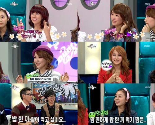 카라가 첫키스의 로망에 대해 밝혀 눈길을 끌었다. 19일 '무릎팍도사'가 폐지된 후 첫선을 보인 MBC '황금어장'에는 카라가 출연했다, MC들은 첫키스에 대한 로망을 물었고, 니콜은 "백허그에 대한 로망이 있다. 백허그 후 하는 키스가 좋다"고 밝혔다. 강지영은 "집에 들어가기 전 가로등 밑에서 하는 키스가 멋있을 것 같다. 내가 들어갈려는데 남자친구가 '지영아'하고 부르고 내가 뒤돌아볼때 '와락'하는 것이 좋다"고 드라마에 자주 등장하는 장면을 이야기했다. 이에 윤종신은 "가을에 하면 하루살이가 입에 많이 들어간다"고 받아쳐 웃음을 자아냈다. 한승연은 "스포츠 경기 관람 중에 하고 싶다. 카메라가 갑자기 관중석을 비출 때, 카메라가 나와 남자친구를 잡을때 키스를 했으면 좋겠다"고 밝혔다. 박규리는 "대관람차 안에서 첫키스를 하면 좋을 것 같다"고 로망을 밝혔다. 용준형과 열애 중인 구하라는 꿈꾸는 데이트가 있냐는 질문에 "밥 한끼 함께 하고 싶네요"라고 말했다. MC들은 "그 동안 마음 편히 밥 한끼 하지 못했구나"라고 안타까워 했다. 이날 구하라는 용준형과 바빠서 만나지도 못하고, 해외에 있는 시간이 많아 시차로 문자도 못하고 있다고 밝히기도 했다. bonbon@osen.co.kr
