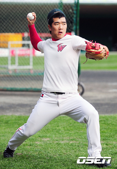 20일 오후 문학구장에서 '2011 롯데카드 프로야구 플레이오프' 4차전 SK 와이번스와 롯데 자이언츠의 경기가 열릴 예정인 가운데 양팀이 훈련시간을 가졌다. 그라운드 위에서 SK 정근우가 모자를 뒤집어쓰고 훈련을 하고 있다. 이번 4차전 선발로 SK는 윤희상(26)를 롯데는 크리스 부첵(33)을 내세운다. 플레이오프가 마감될 수 있는 4차전이라는 점에서 양 팀 모두 피할 수 없는 한판이다. 양팀은 1차전서는 연장 접전 끝에 정상호의 홈런을 앞세운 SK가 2차전서는 송승준의 역투와 전준우의 투런 홈런으로 롯데가 승리를 거두어 사이좋게 1승씩을 나누어 가졌다. 그러나 SK는 3차전서 선발 송은범의 무실점 호투와 최동수의 결승타, 김강민의 2타점 쐐기타를 앞세워 승리를 거둬 한국시리즈에 1승만을 남겨둔 상태. 반면 탈락 위기에 놓인 롯데는 필승의지를 다지고 있다. / rumi@osen.co.kr