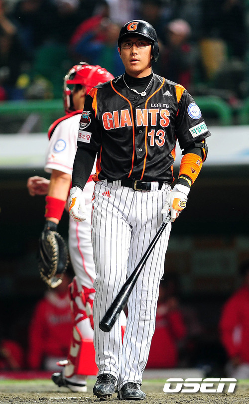 '2011 롯데카드 프로야구 플레이오프' 4차전 SK 와이번스와 롯데 자이언츠의 경기 4회초 2사 2루 황재균이 삼진으로 물러나고 있다. 20일 인천 문학구장에서 SK 와이번스와 롯데 자이언츠의 플레이오프 4차전 경기가 벌어졌다. 4차전 선발로 SK는 윤희상(26)을 롯데는 크리스 부첵(33)을 내세웠다. 플레이오프가 마감될 수 있는 4차전이라는 점에서 양 팀 모두 피할 수 없는 한판이다. 양팀은 1차전은 연장 접전 끝에 정상호의 홈런을 앞세운 SK가 ,2차전은 송승준의 역투와 전준우의 투런 홈런으로 롯데가 승리를, 3차전은 SK가 송은범의 호투를 바탕으로 승리를 거두어 시리즈 성적 2-1로 롯데를 벼랑 끝으로 밀어 넣었다. 한국시리즈 진출에 단 1승만을 남겨놓은 SK가 이대로 분위기를 이어갈지. 반면 탈락 위기에 놓인 롯데가 국면 전환을 할지 관심거리다. /spjj@osen.co.kr