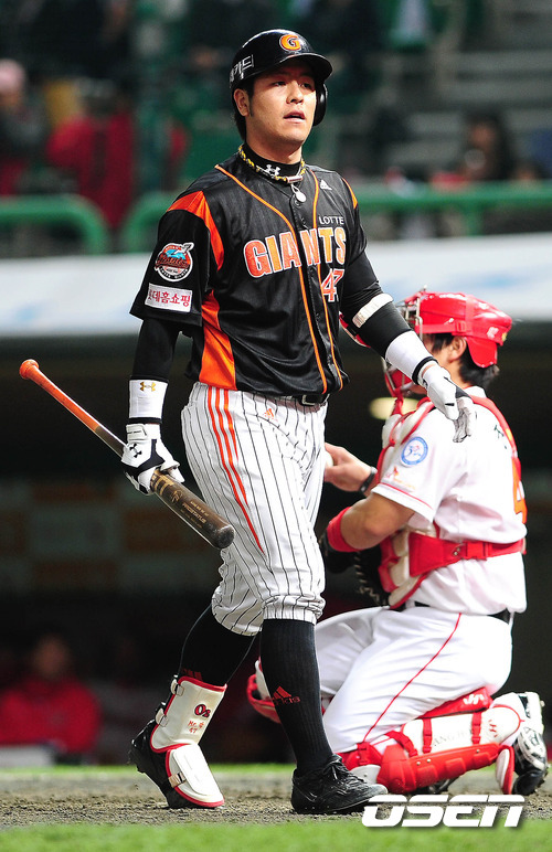 '2011 롯데카드 프로야구 플레이오프' 4차전 SK 와이번스와 롯데 자이언츠의 경기 4회초 1사 2루 강민호가 삼진으로 물러나고 있다. 20일 인천 문학구장에서 SK 와이번스와 롯데 자이언츠의 플레이오프 4차전 경기가 벌어졌다. 4차전 선발로 SK는 윤희상(26)을 롯데는 크리스 부첵(33)을 내세웠다. 플레이오프가 마감될 수 있는 4차전이라는 점에서 양 팀 모두 피할 수 없는 한판이다. 양팀은 1차전은 연장 접전 끝에 정상호의 홈런을 앞세운 SK가 ,2차전은 송승준의 역투와 전준우의 투런 홈런으로 롯데가 승리를, 3차전은 SK가 송은범의 호투를 바탕으로 승리를 거두어 시리즈 성적 2-1로 롯데를 벼랑 끝으로 밀어 넣었다. 한국시리즈 진출에 단 1승만을 남겨놓은 SK가 이대로 분위기를 이어갈지. 반면 탈락 위기에 놓인 롯데가 국면 전환을 할지 관심거리다. /spjj@osen.co.kr