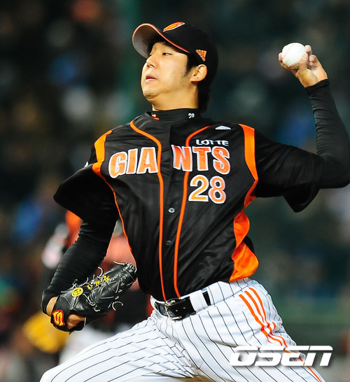 20일 오후 문학구장에서 열린 '2011 롯데카드 프로야구 플레이오프' 4차전 SK 와이번스와 롯데 자이언츠의 경기에서 4회말 1사 주자 1루 롯데 선발 부첵 대신 마운드에 오른 장원준이 힘차게 공을 뿌리고 있다. 이번 4차전 선발로 SK는 윤희상(26)를 롯데는 크리스 부첵(33)을 내세웠다. 플레이오프가 마감될 수 있는 4차전이라는 점에서 양 팀 모두 피할 수 없는 한판이다. 양팀은 1차전서는 연장 접전 끝에 정상호의 홈런을 앞세운 SK가 2차전서는 송승준의 역투와 전준우의 투런 홈런으로 롯데가 승리를 거두어 사이좋게 1승씩을 나누어 가졌다. 그러나 SK는 3차전서 선발 송은범의 무실점 호투와 최동수의 결승타, 김강민의 2타점 쐐기타를 앞세워 승리를 거둬 한국시리즈에 1승만을 남겨둔 상태. 반면 탈락 위기에 놓인 롯데는 필승의지를 다지고 있다. / rumi@osen.co.kr