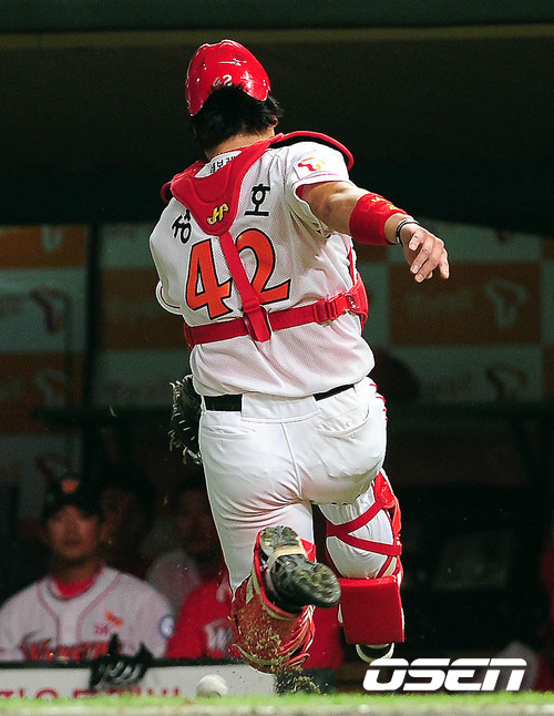 '2011 롯데카드 프로야구 플레이오프' 4차전 SK 와이번스와 롯데 자이언츠의 경기 6회초 무사 1루 강민호이 파울 타구에 정상호 포수가 몸을 날렸지만 놓치고 있다. 20일 인천 문학구장에서 SK 와이번스와 롯데 자이언츠의 플레이오프 4차전 경기가 벌어졌다. 4차전 선발로 SK는 윤희상(26)을 롯데는 크리스 부첵(33)을 내세웠다. 플레이오프가 마감될 수 있는 4차전이라는 점에서 양 팀 모두 피할 수 없는 한판이다. 양팀은 1차전은 연장 접전 끝에 정상호의 홈런을 앞세운 SK가 ,2차전은 송승준의 역투와 전준우의 투런 홈런으로 롯데가 승리를, 3차전은 SK가 송은범의 호투를 바탕으로 승리를 거두어 시리즈 성적 2-1로 롯데를 벼랑 끝으로 밀어 넣었다. 한국시리즈 진출에 단 1승만을 남겨놓은 SK가 이대로 분위기를 이어갈지. 반면 탈락 위기에 놓인 롯데가 국면 전환을 할지 관심거리다. /spjj@osen.co.kr