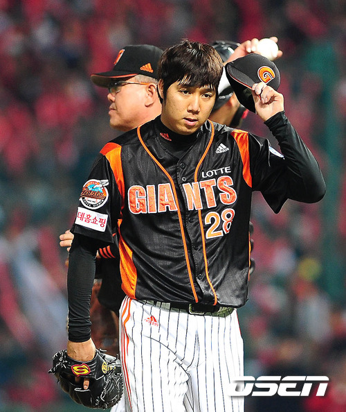 '2011 롯데카드 프로야구 플레이오프' 4차전 SK 와이번스와 롯데 자이언츠의 경기 4회말 마운드에 올라 4이닝을 무실점 호투한 장원준이 8회말 1사에서 마운드를 내려가고 있다. 20일 인천 문학구장에서 SK 와이번스와 롯데 자이언츠의 플레이오프 4차전 경기가 벌어졌다. 4차전 선발로 SK는 윤희상(26)을 롯데는 크리스 부첵(33)을 내세웠다. 플레이오프가 마감될 수 있는 4차전이라는 점에서 양 팀 모두 피할 수 없는 한판이다. 양팀은 1차전은 연장 접전 끝에 정상호의 홈런을 앞세운 SK가 ,2차전은 송승준의 역투와 전준우의 투런 홈런으로 롯데가 승리를, 3차전은 SK가 송은범의 호투를 바탕으로 승리를 거두어 시리즈 성적 2-1로 롯데를 벼랑 끝으로 밀어 넣었다. 한국시리즈 진출에 단 1승만을 남겨놓은 SK가 이대로 분위기를 이어갈지. 반면 탈락 위기에 놓인 롯데가 국면 전환을 할지 관심거리다. /spjj@osen.co.kr