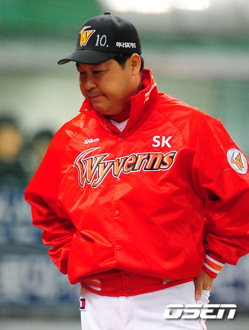 20일 오후 문학구장에서 열린 '2011 롯데카드 프로야구 플레이오프' 4차전 SK 와이번스와 롯데 자이언츠의 경기에서 9회말 패색이 짙어가자 SK 이만수 감독대행이 아쉬운 표정을 짓고 있다. 이번 4차전 선발로 SK는 윤희상(26)를 롯데는 크리스 부첵(33)을 내세웠다. 플레이오프가 마감될 수 있는 4차전이라는 점에서 양 팀 모두 피할 수 없는 한판이다. 양팀은 1차전서는 연장 접전 끝에 정상호의 홈런을 앞세운 SK가 2차전서는 송승준의 역투와 전준우의 투런 홈런으로 롯데가 승리를 거두어 사이좋게 1승씩을 나누어 가졌다. 그러나 SK는 3차전서 선발 송은범의 무실점 호투와 최동수의 결승타, 김강민의 2타점 쐐기타를 앞세워 승리를 거둬 한국시리즈에 1승만을 남겨둔 상태. 반면 탈락 위기에 놓인 롯데는 필승의지를 다지고 있다. / rumi@osen.co.kr