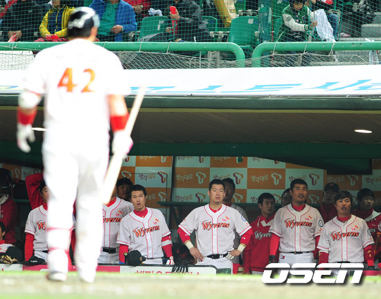'2011 롯데카드 프로야구' 플레이오프 4차전 9회말 SK 선수들이 문승훈 구심의 볼 판정에 불만을 표시하고 있다. 기사회생이다. 벼랑 끝에 몰렸던 롯데 자이언츠가 승부를 다시 원점으로 돌렸다. 기다렸던 이대호의 홈런포가 작렬, 더욱 값진 승리를 안았다. 롯데는 20일 문학구장에서 열린 롯데와의 플레이오프 4차전에서 선발 부첵과 장원준의 호투, 손아섭의 결승타와 이대호의 쐐기포를 앞세워 2-0으로 이겼다. 선발 부첵은 3⅓이닝 동안 2피안타 2탈삼진 2피안타 무실점으로 호투를 펼쳤다. 총 투구수는 44개. 146km를 최고 구속으로 찍었다. 롯데 양승호 감독은 무실점으로 잘 던지던 부첵을 내리고 대신 1차전 선발 장원준을 마운드에 올리는 승부수를 띄웠다. 장원준은 4이닝 1피안타 1볼넷 5탈삼진으로 무실점, 역시 무실점하며 구원승을 따냈다. 총투구수는 52개. 1차전 9회말 병살타를 쳐 고개를 숙였던 손아섭은 이날 5회 선제 적시타로 팀 승리를 이끌었다. 특히 4번 타자 이대호는 6회 선두타자로 나와 좌중월 솔로포를 쏘아올렸다. 선발 윤희상 대신 마운드에 오른 이영욱이 볼카운트 1-1에서 던진 3구째 커브(107km)가 힘없이 바깥쪽으로 높게 걸치며 들어오자 여지없이 스윙을 돌렸다. 이번 포스트시즌 첫 홈런포. 이날 승부를 결정지은 쐐기포이기도 했다. 이로써 SK와의 2승2패 균형을 이룬 롯데는 오는 22일 부산 사직구장에서 열리는 플레이오프 5차전 홈경기에서 한국시리즈 진출 티켓을 둔 피할 수 없는 한판 경기를 치른다. /spjj@osen.co.kr