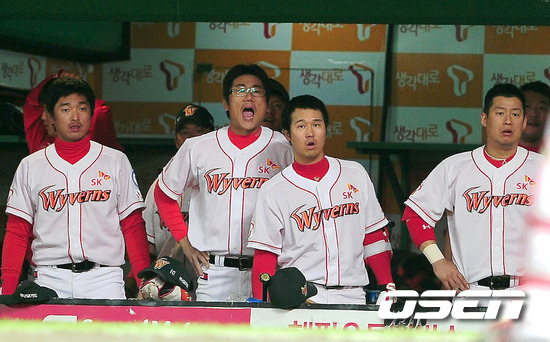 '2011 롯데카드 프로야구' 플레이오프 4차전 9회말 SK 선수들이 문승흔 구심의 스트라익 판정에 불만을 표시하고 있다. 기사회생이다. 벼랑 끝에 몰렸던 롯데 자이언츠가 승부를 다시 원점으로 돌렸다. 기다렸던 이대호의 홈런포가 작렬, 더욱 값진 승리를 안았다. 롯데는 20일 문학구장에서 열린 롯데와의 플레이오프 4차전에서 선발 부첵과 장원준의 호투, 손아섭의 결승타와 이대호의 쐐기포를 앞세워 2-0으로 이겼다. 선발 부첵은 3⅓이닝 동안 2피안타 2탈삼진 2피안타 무실점으로 호투를 펼쳤다. 총 투구수는 44개. 146km를 최고 구속으로 찍었다. 롯데 양승호 감독은 무실점으로 잘 던지던 부첵을 내리고 대신 1차전 선발 장원준을 마운드에 올리는 승부수를 띄웠다. 장원준은 4이닝 1피안타 1볼넷 5탈삼진으로 무실점, 역시 무실점하며 구원승을 따냈다. 총투구수는 52개. 1차전 9회말 병살타를 쳐 고개를 숙였던 손아섭은 이날 5회 선제 적시타로 팀 승리를 이끌었다. 특히 4번 타자 이대호는 6회 선두타자로 나와 좌중월 솔로포를 쏘아올렸다. 선발 윤희상 대신 마운드에 오른 이영욱이 볼카운트 1-1에서 던진 3구째 커브(107km)가 힘없이 바깥쪽으로 높게 걸치며 들어오자 여지없이 스윙을 돌렸다. 이번 포스트시즌 첫 홈런포. 이날 승부를 결정지은 쐐기포이기도 했다. 이로써 SK와의 2승2패 균형을 이룬 롯데는 오는 22일 부산 사직구장에서 열리는 플레이오프 5차전 홈경기에서 한국시리즈 진출 티켓을 둔 피할 수 없는 한판 경기를 치른다. /spjj@osen.co.kr