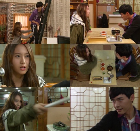 [OSEN=김경주 인턴기자] 이종석과 크리스탈이 코믹한 싸움 연기를 선보이며 티격태격하는 남매를 완벽하게 소화했다. 20일 방송된 MBC '하이킥! 짧은 다리의 역습'에서는 끊임없이 다투는 이종석(안종석)과 크리스탈(안수정)의 모습이 그려졌다. 둘은 첫 등장부터 신경전을 벌였다. 이종석이 자신의 노트북을 쓰는 크리스탈에게 시비를 건 것. 이종석은 "계속 노트북을 쓸거면 나도 네 방을 쓴다"라고 말하며 고집을 피웠고 이에 크리스탈과 다툼을 벌였다. 둘의 신경전은 계속됐다. 안내상의 돈을 가지고 해외로 도망간 부사장 우현을 찾기 위해 그가 자주 들렀던 국밥집으로 온 두 사람은 국밥을 먹으며 다툼을 벌였다. 종석은 혼자 밥을 먹으며 배고픈 크리스탈을 약올렸고 이에 화가 난 크리스탈은 종석과 숟가락 싸움을 벌였다. 크리스탈은 숟가락으로는 역부족이었는지 빗자루를 집어들었고 종석은 질새라 하키채를 집어들며 코믹한 싸움 연기를 선보였다. 방송 직후 시청자들은 "둘의 연기가 물 올랐다" "실제 모습과는 다른 성격을 정말 실감나게 연기하는 것 같다" "앞으로 둘의 모습이 기대된다" 등의 시청 소감을 남기며 앞으로 펼쳐질 두 사람의 연기에 기대감을 보였다. 한편 이날 방송에서는 서지석과 박하선의 알콩달콩한 모습이 그려지면서 본격적인 로맨스를 예고했다. trio88@osen.co.kr ☞ hoppin 동영상 바로보기 '하이킥! 짧은 다리의 역습' 캡쳐.