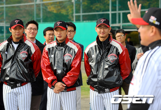 21일 오전 경기도 구리 LG GS챔피언스파크에서 열린 LG 김기태 신임감독의 선수단과의 상견례에서 LG 주장 박용택이 김기태 감독의 인사말을 듣고 있다. 이날부터 1차로 훈련을 진행하며, 11월 6일∼30일에는 진주 연암공업대 야구장과 구리로 나눠 훈련을 진행할 계획이다. 한편 LG 트윈스는 지난 14일 신임감독으로 선임한 김기태(42) 감독과 계약기간 3년, 계약금 2억원, 연봉 2억원 등 3년간 총액 8억원에 계약했다. /soul1014@osen.co.kr