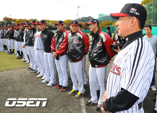 21일 오전 경기도 구리 LG GS챔피언스파크에서 열린 LG 김기태 신임감독의 선수단과의 상견례에서 김기태 감독이 인사를 하고 있다. 이날부터 1차로 훈련을 진행하며, 11월 6일∼30일에는 진주 연암공업대 야구장과 구리로 나눠 훈련을 진행할 계획이다. 한편 LG 트윈스는 지난 14일 신임감독으로 선임한 김기태(42) 감독과 계약기간 3년, 계약금 2억원, 연봉 2억원 등 3년간 총액 8억원에 계약했다. /soul1014@osen.co.kr