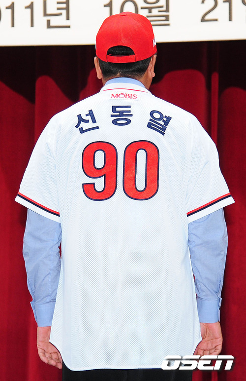 [OSEN=광주 ,백승철 인턴기자] 21일 오후 광주 KIA 제1공장 강당에서 열린 선동렬 신임감독 취임식에서 선동렬 감독이 유니폼을 입은후 등번호를 보이고 있다. KIA는 당초 현역 시절 배번이었던 18번도 고려했지만 선동렬 감독이 영구결번의 취지를 지켜나가는 것이 좋겠다는 뜻을 밝힘에 따라 90번으로 확정지었다. KIA는 지난 18일 조범현 감독 사퇴와 함께 선동렬 전 삼성 감독의 선임을 발표했다. 선동렬 신임감독은 광주 출신으로 해태에서 11년간 6차례 한국시리즈 우승을 이끈바 있다. KIA 7대 사령탑인 선동렬 신인감독은 계약금 5억원, 연봉 3억8천만원에 3년간 계약을 맺었다. / baik@osen.co.kr