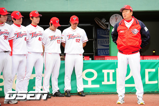 [OSEN=광주 ,백승철 인턴기자] 21일 오후 광주구장에서 열린 선동렬 신인감독과 KIA 선수단의 상견례 자리에서 선동렬 감독이 선수들과 취재진들 앞에서 인사말을 하고 있다. KIA는 지난 18일 조범현 감독 사퇴와 함께 선동렬 전 삼성 감독의 선임을 발표했다. 선동렬 신임감독은 광주 출신으로 해태에서 11년간 6차례 한국시리즈 우승을 이끈바 있다. KIA 7대 사령탑인 선동렬 신인감독은 계약금 5억원, 연봉 3억8천만원에 3년간 계약을 맺었다. / baik@osen.co.kr